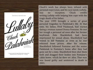 By Chuck Palahniuk Doubleday. Lullaby by Chuck Palahniuk l Summary Study Guide. To most people a lullaby is a soothing song meant to help coax a child to sleep but in Chuck Palahniuks hands it becomes a death spell that can kill anyone.